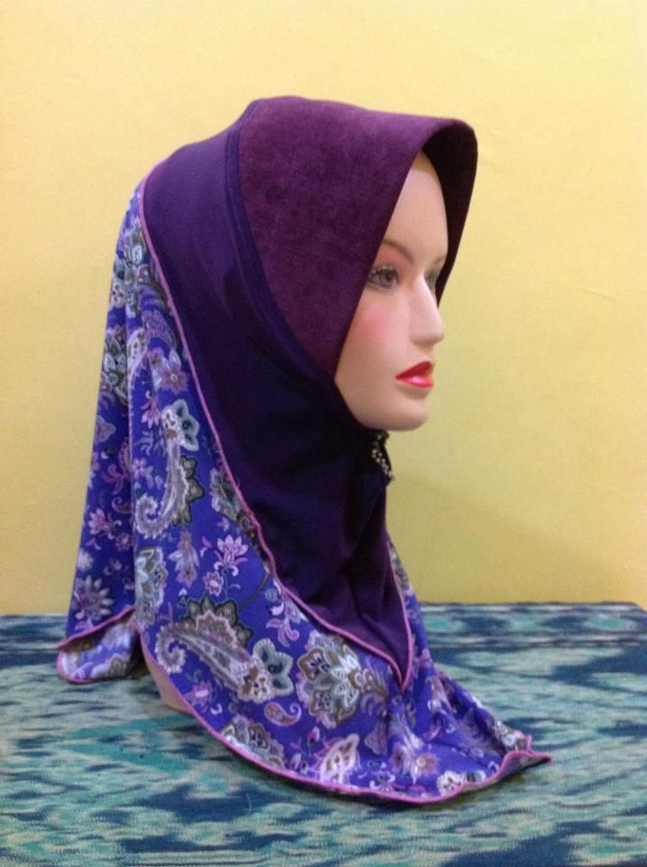 TUDUNG - 028 Lycra Plain Purple + Lycra Bercorak (Awning Thai Silk) RM35 Size [M]