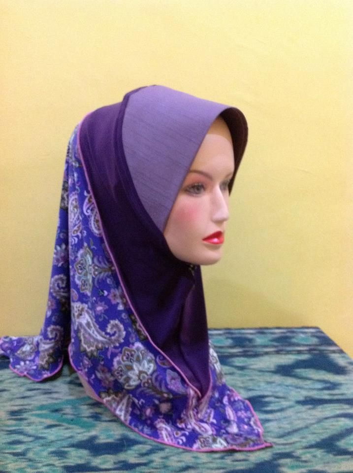 TUDUNG - 028 Lycra Plain Purple + Lycra Bercorak (Awning Thai Silk) RM35 Size [M]